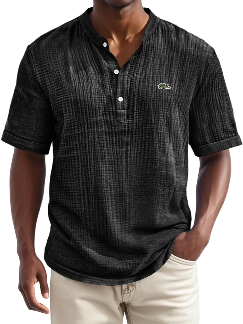 Men's Loose Textured Button T-Shirt
